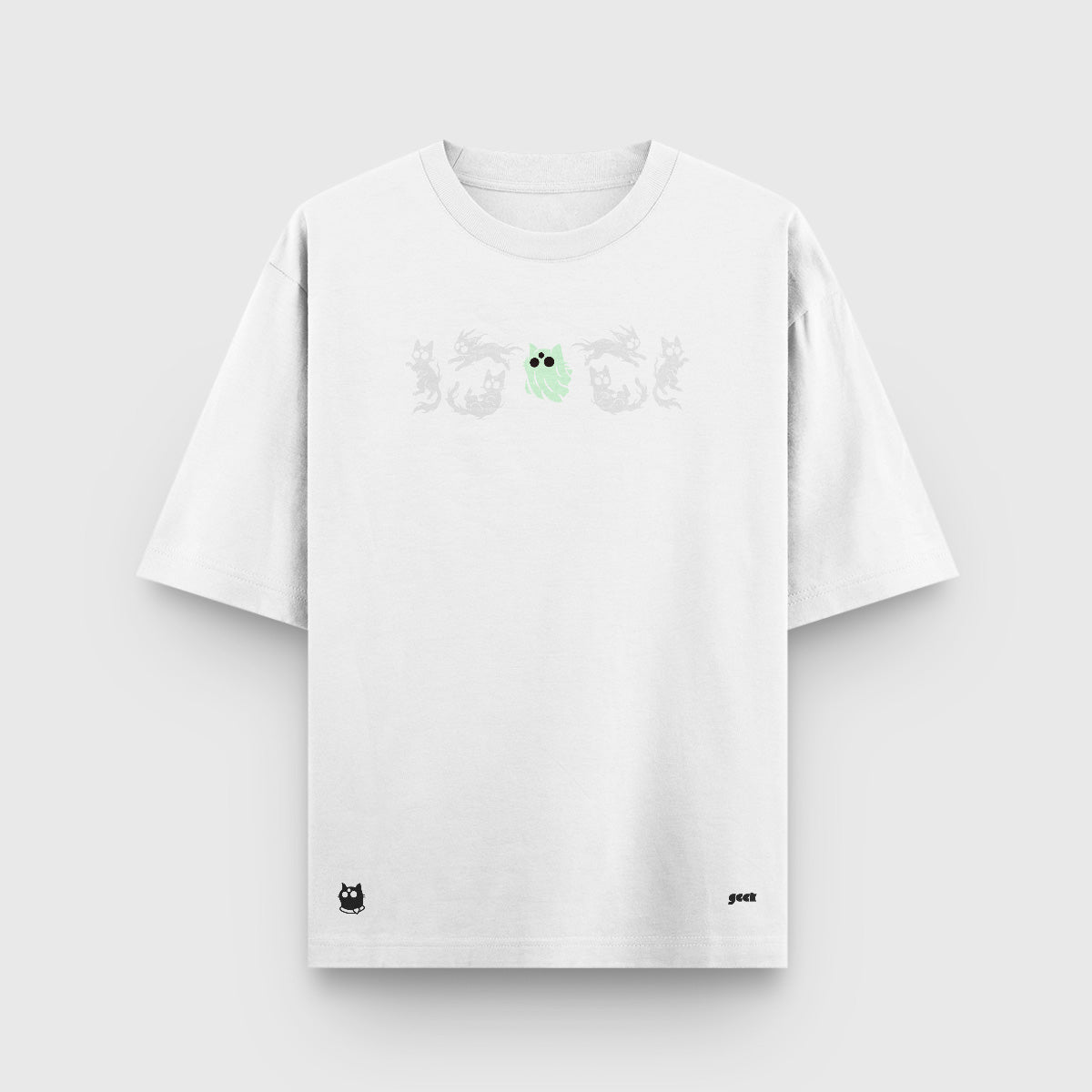 No todo en Halloween tiene que dar miedo… algunos fantasmas solo quieren verse cool. Este básico trae al gatico fantasma de Geek Hunters, minimalista y perfecto para usar todos los días.