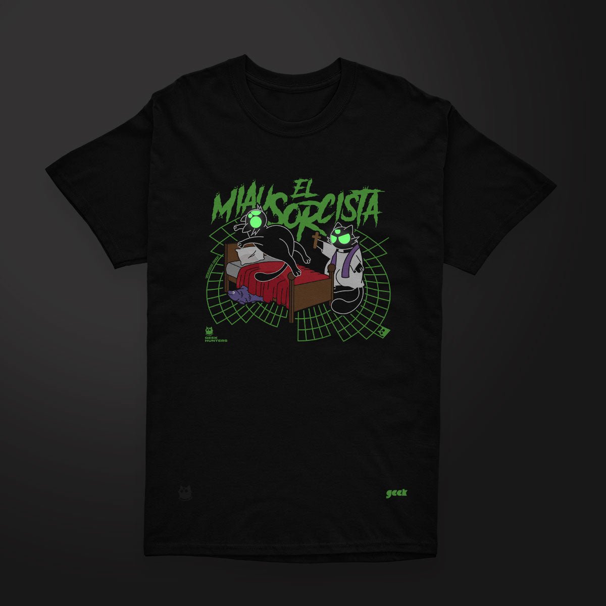 Esta camiseta trae la parodia más gatunamente aterradora del cine de terror. Perfecta para los amantes de los gatos, el buen estilo y las historias que erizan los bigotes.