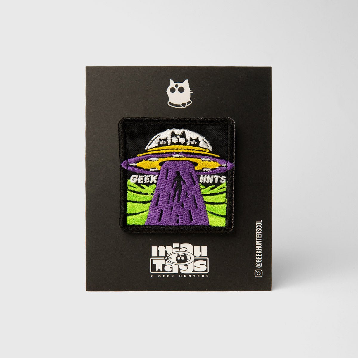 Cámbiale la personalidad a tu camiseta cada vez que quieras. Los Miautags son parches bordados con velcro, diseñados para que puedas intercambiarlos fácilmente entre tus prendas Geek Hunters.